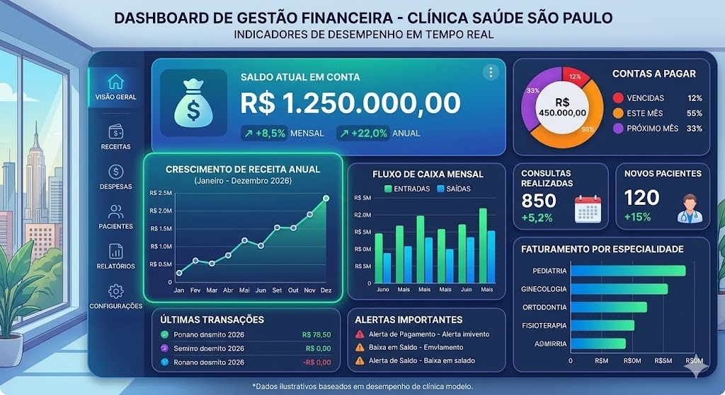 Por exemplo, ao adotar um software especializado, você consegue integrar o agendamento de consultas com a emissão de notas fiscais e o controle de estoque. Além disso, essas ferramentas geram relatórios automáticos que oferecem uma visão panorâmica sobre a saúde do negócio em tempo real.